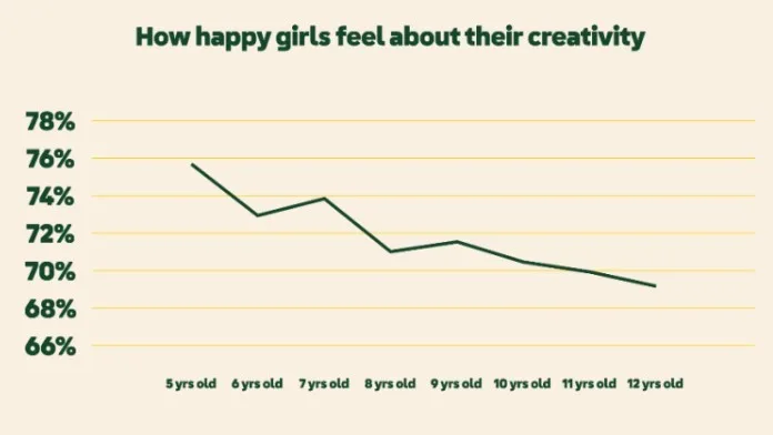 And it gets worse as they get older. While little girls aged 5-12 are bursting with confidence in their creativity (77%), that confidence flips on its head as they grow up. Apparently, by the time they're older, about 76% of girls are stressing about what others might think of their creative ideas - and that really does crush our hearts.