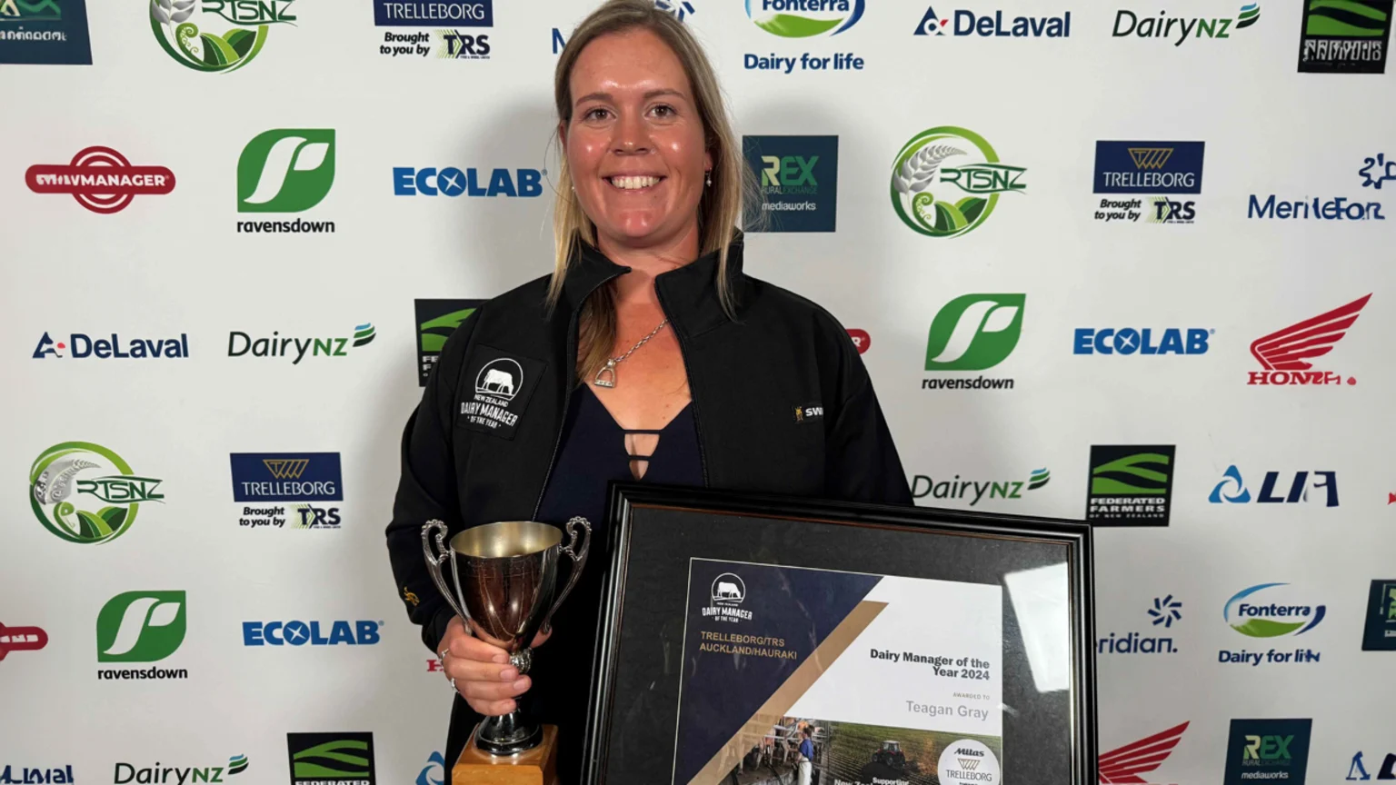 Teagan Gray was presented with the 2024 Auckland/Hauraki Dairy Manager of the Year trophy at the recent awards evening.