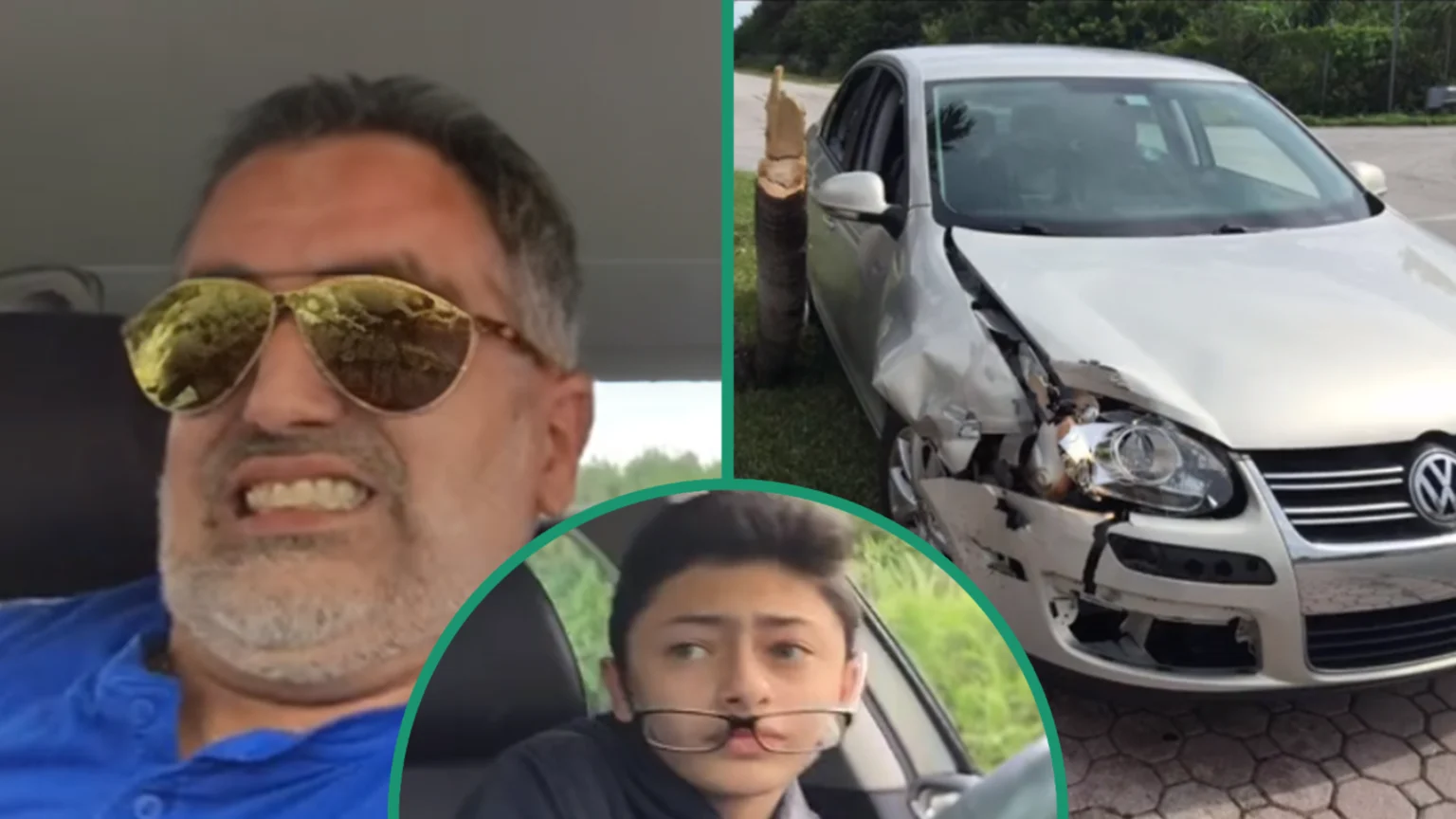 The first-time driver thought it'd be a good idea to put the pedal to the metal and lost control of the wheel despite his Dad best efforts to take over.