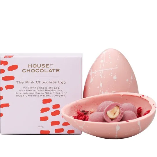 House of Chocolate For those keen on a bougie Easter feast, this Kiwi family biz makes handcrafted eggs that are almost too pretty to eat. Their Pink Chocolate Egg is a work of art, lined with raspberries and hazelnuts and filled with Ruby hazelnut dragees.