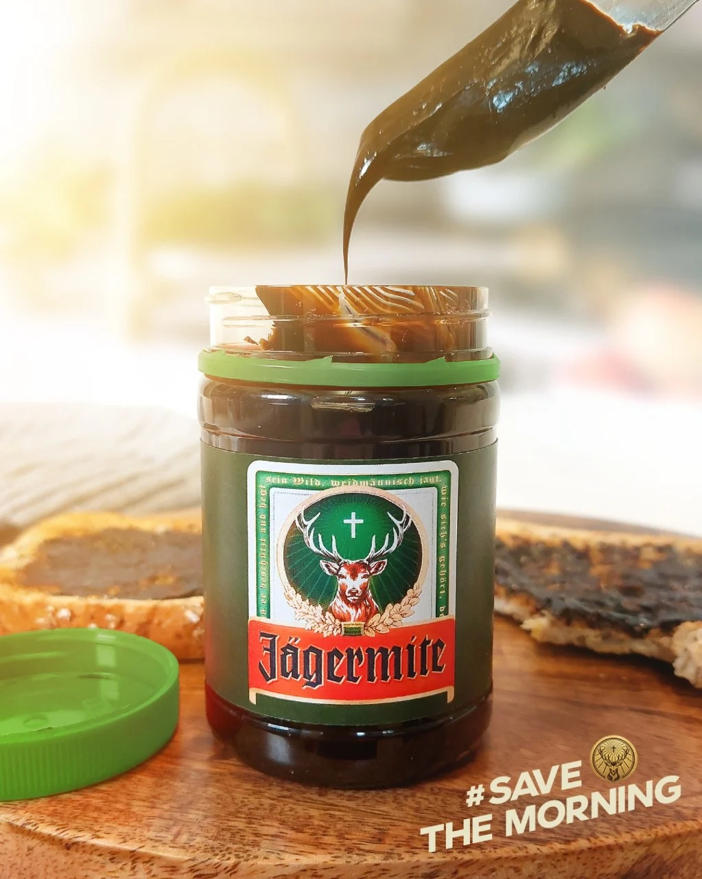 "Jagermite is here just in time for breakfast. All the great taste of Jagermeister but spreadable. Kick the morning off like you kick your nights off. We Jagermiting this morning?"
