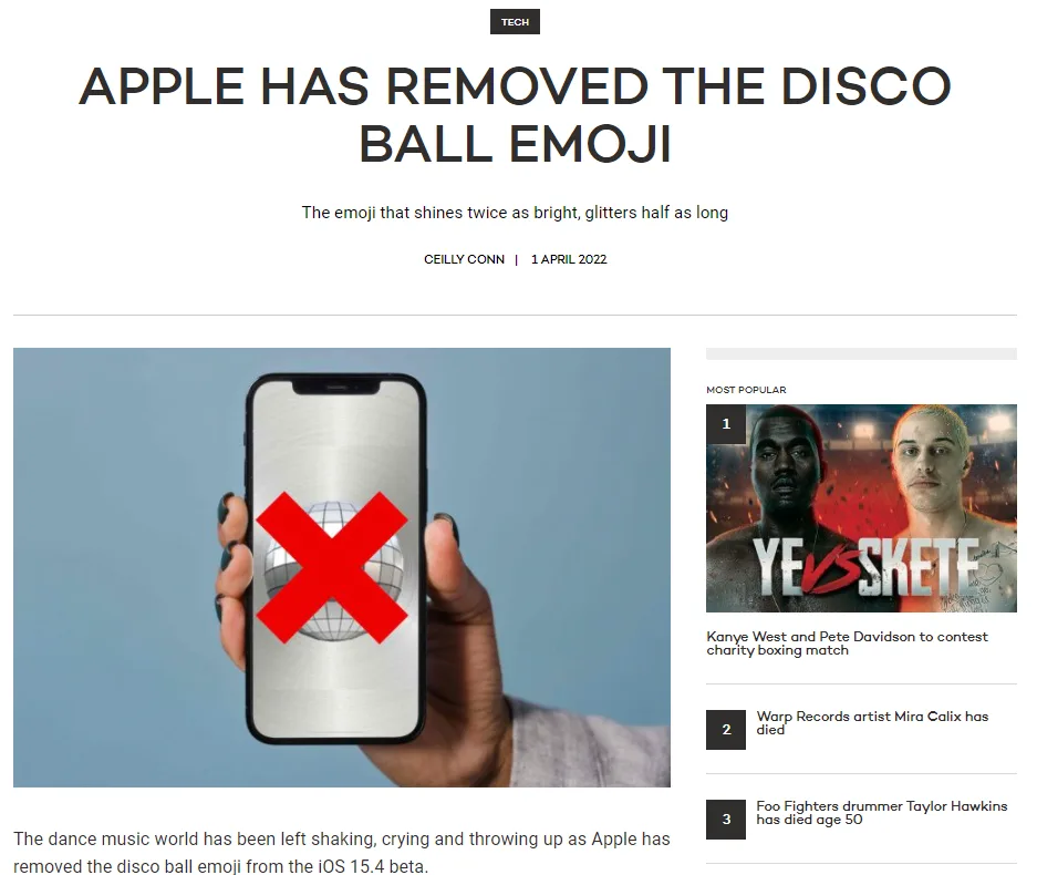 Mixmag back at it again, this time announcing the disco ball emoji was being removed