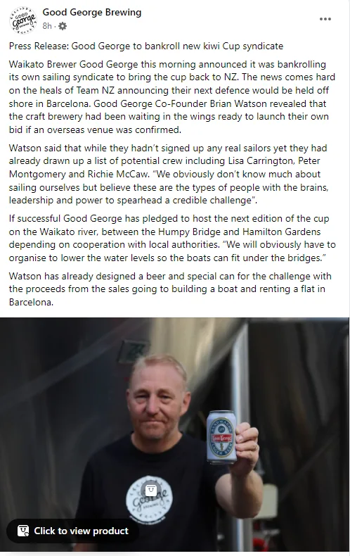 Good George to bankroll new Kiwi Cup Syndicate with a white tin beer can