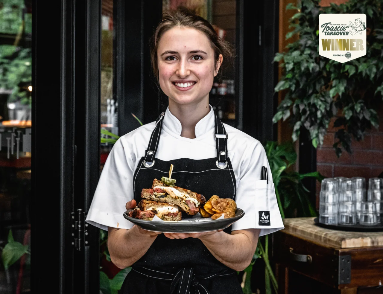Senior Chef de partie Brooke Moore becomes the first female to win the competition since it began in 2019. Her winning sandwich contains housemade smoked lamb pastrami, smoked prawns, mozzarella, smoked cheddar sauce and McClure's Sweet & Spicy Pickles all packed within locally made BreadHead miso tahini sourdough with smoked aioli and pickle juice gel on the side. Wow.