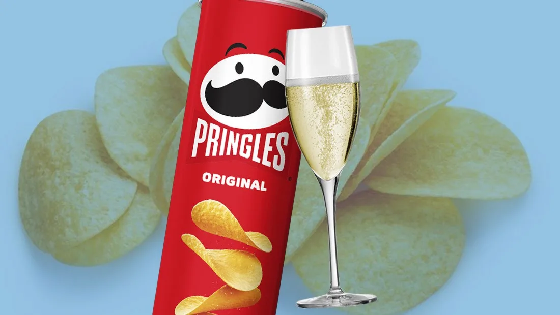 They don't need to be choosy with the flavours; go a champagne. They're like the oyster of the chip world. The Pringles original, it's classy! So, you know, good sparkling Methode champagne or even a Carba or a perky prosecco.