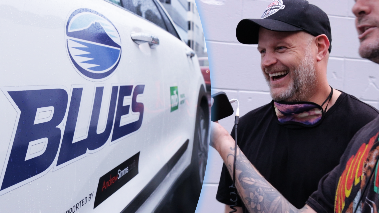 So, with a bit of help from Andrew Simms Kia the Auckland Blues, Rog and Bryce surprised Mulls with a brand new car that he can whip around in for a week - a beautiful Blues-branded Kia Niro. Check it out.