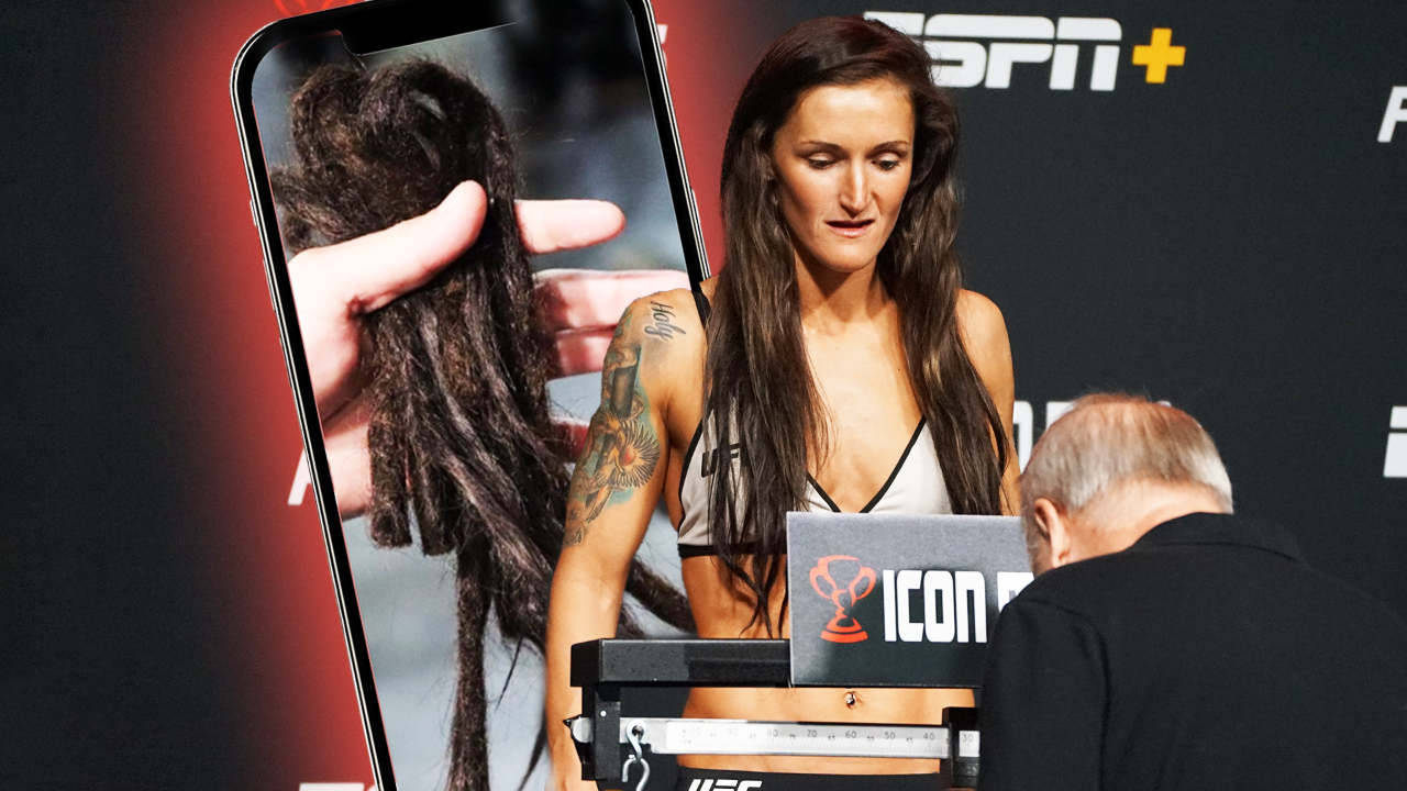 A UFC fighter put the scissors to her hair in order to make weight for her fight.
