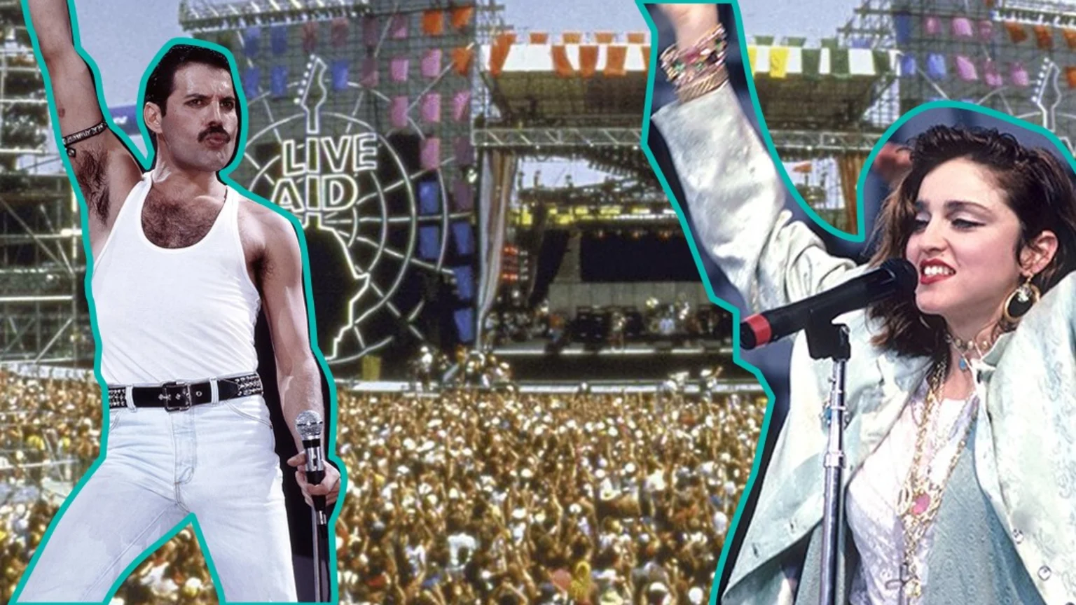 Most well-known for the legendary Queen performance, the lineup of the benefit concert also features Elton John, Madonna, U2, Duran Duran, Sting, Bryan Adams, the Beach Boys, Dire Straits and more.