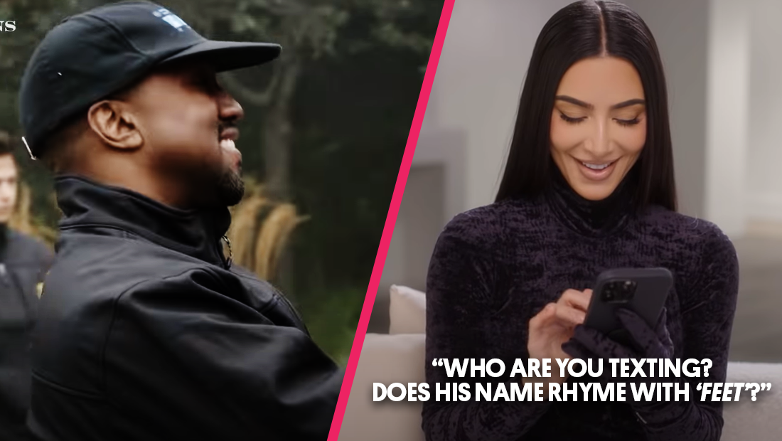 While sitting down, Kim Kardashian is seen on her phone with a producer asking ""Who are you texting, Kim? Does his name rhyme with 'feet'?" with Kim just laughing it off and girl, we know that laugh.