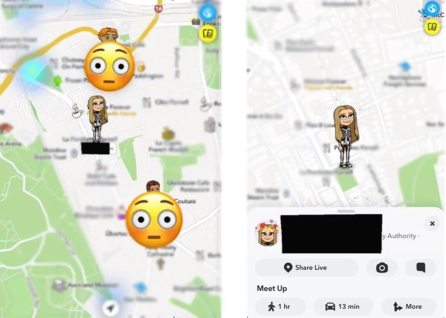 Here's what it looks like (obviously we have blurred the map, censored other Bitmojis, and changed the maps location):