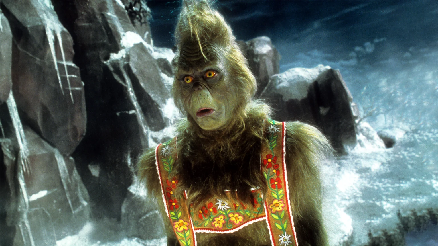 "The Mean One is a hairy, green-skinned grump in a Santa suit, living on a mountain high above the town of Newville, despising the holiday season," it says.