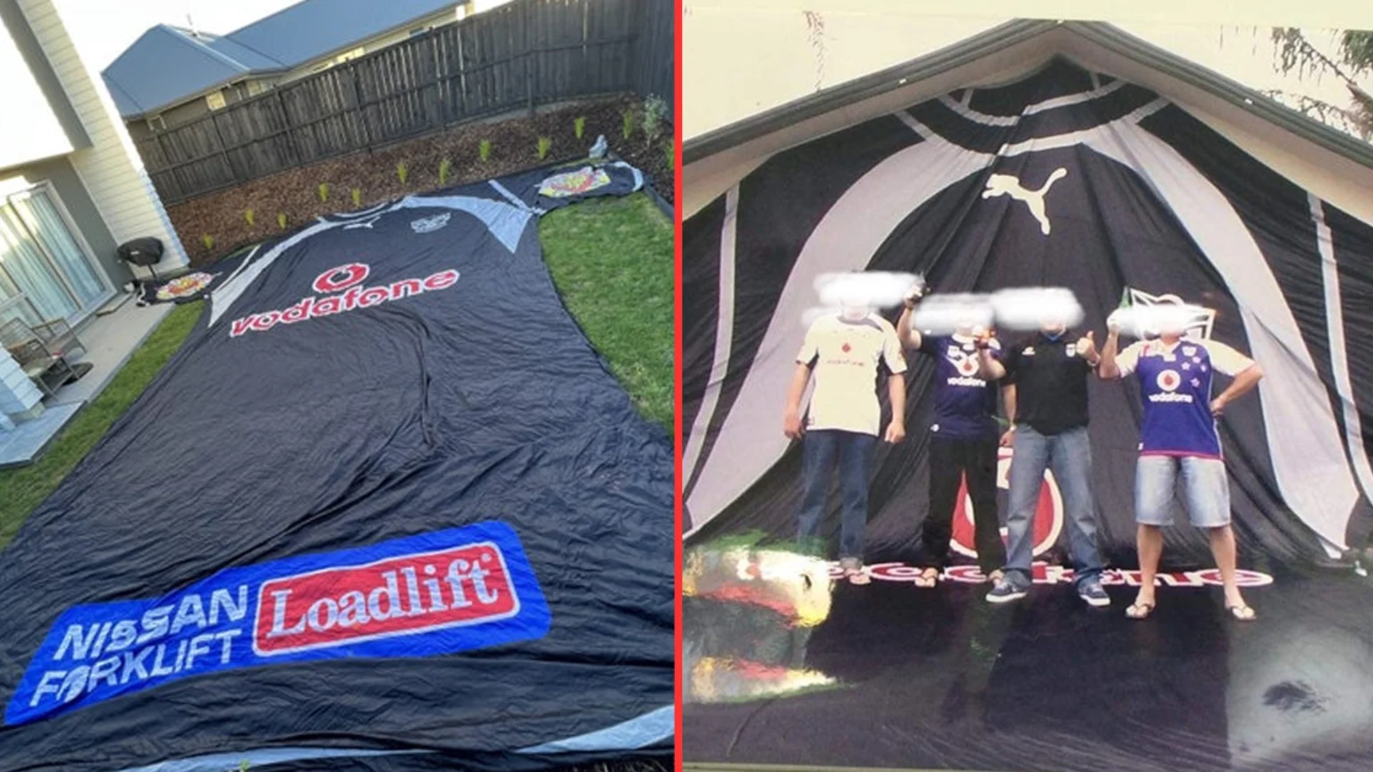 There's a massive Warriors outdoor replica jersey on sale on TradeMe