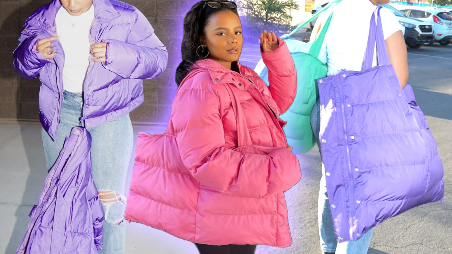 That's why 1920apparel on TikTok has designed an epic-looking puffer where the bottom half unzips and can be used as a tote bag - that'll prove handy when next forget your supermarket bags.