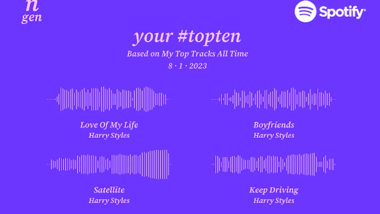 It takes your most played song/artists from several different periods and turns them into either a list with waveforms, a chart that looks like DNA while describing the vibe of the artist/track and can even turn it into a flower if you're so inclined.