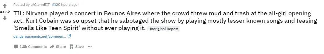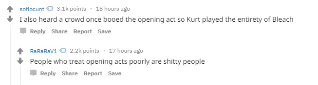 When this story appeared in the comments of this reddit thread, others shared yarns about how Cobain would often change the setlist of his gigs if the audience were being dicks to the opening act.