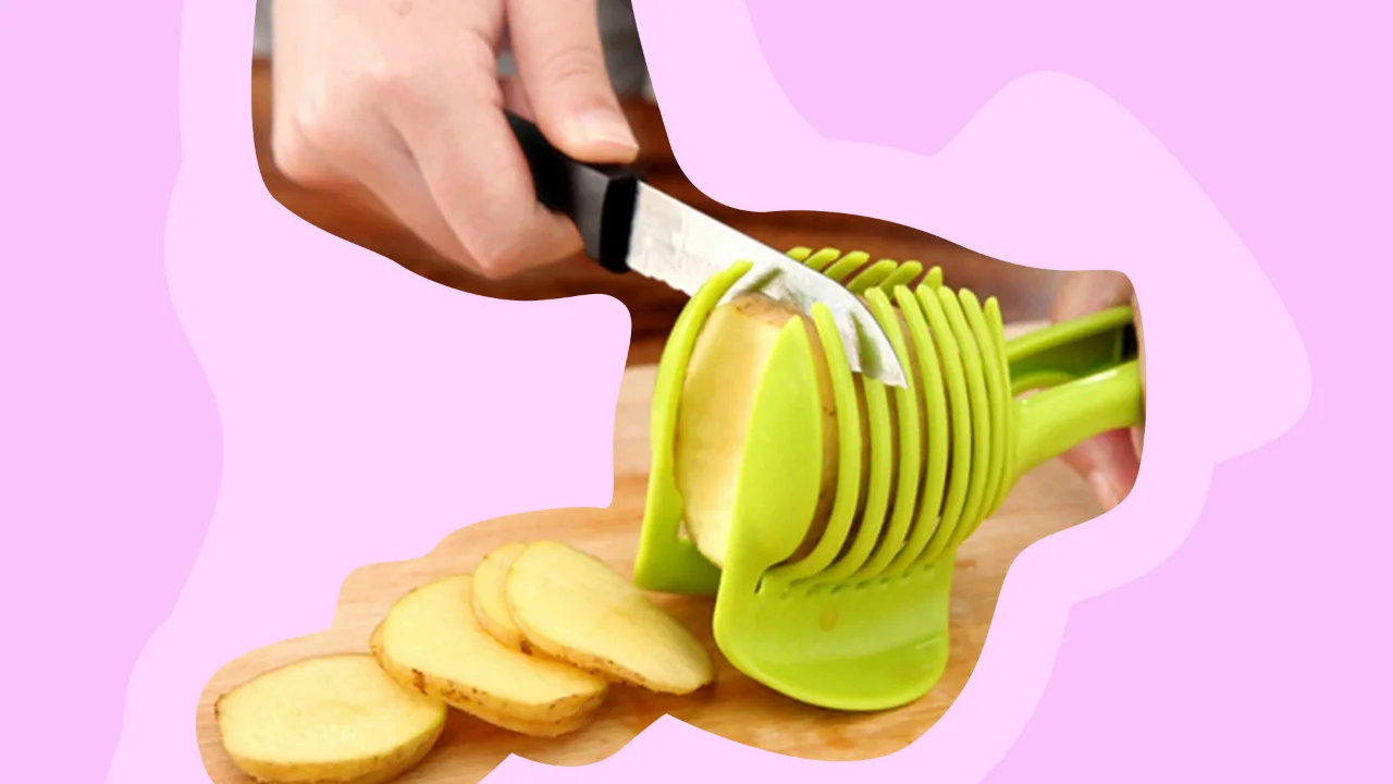 Want to get the perfect tomato slice without the fear of cutting off your fingers? You'll want to get around these fruit tongs.