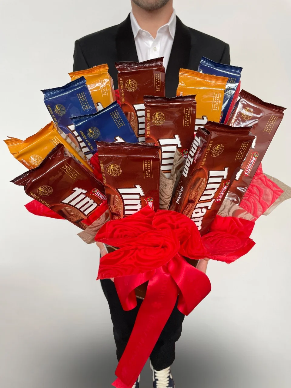 Now, you can enjoy all the chocolaty goodness by treating yourself to a literal bouquet of Tim Tams.