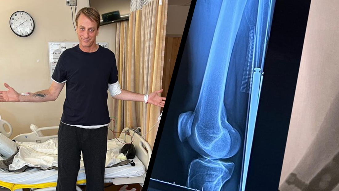 Tony Hawk has broken his leg.