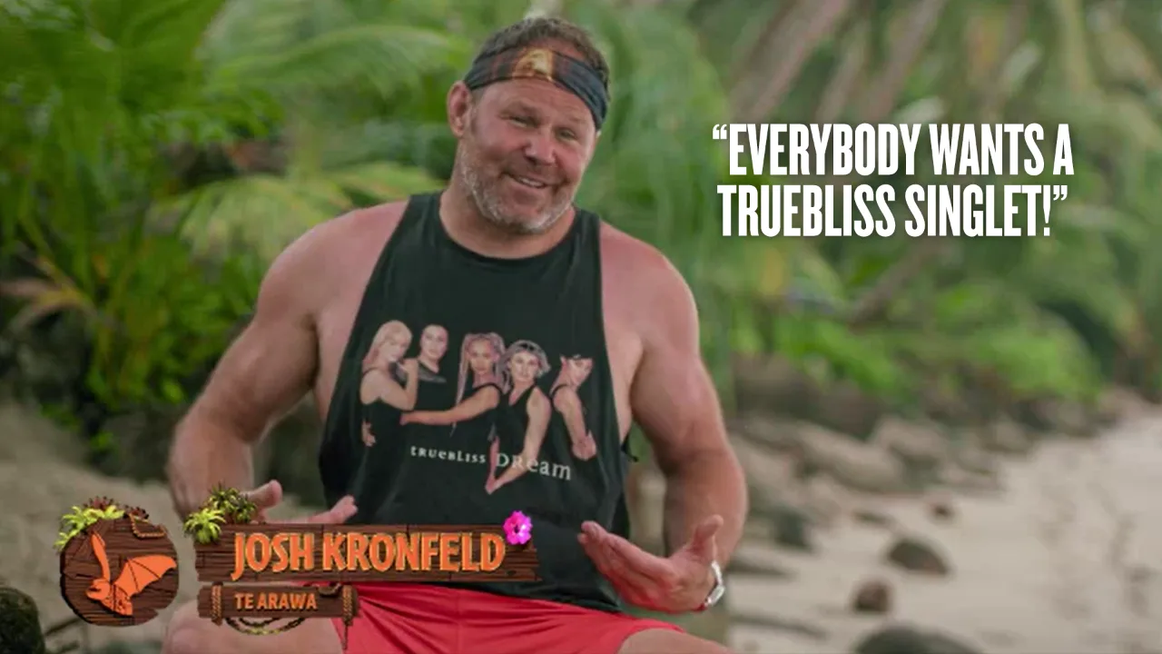 If someone tells you they're too tough and staunch for TrueBliss - they're lying. Because ex-All Black Josh Kronfeld rocked his TrueBliss top as gifted to him by 90's popstar Joe Cotton. "I didn't know whether he was joking or not. The joke's on him, because I HAD a singlet to give to him!"