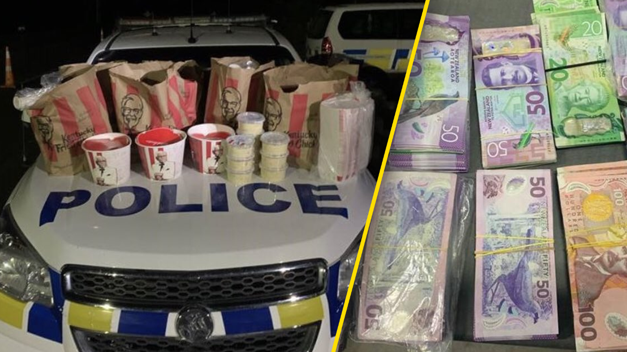 "The vehicle eventually pulled over and police established they had been travelling from Hamilton trying to get into Auckland. The vehicle was searched and police located the cash, alongside empty ounce bags and a large amount of takeaways."