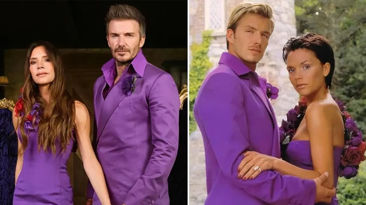 To celebrate their milestone anniversary the couple recently dressed in the purple outfits they wore at their wedding reception in 1999.