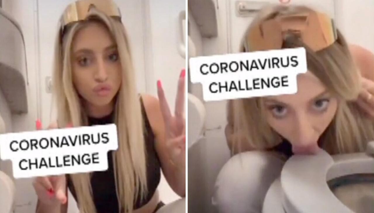 An influencer has filmed herself licking a toilet seat on a plane as part of a TikTok "coronavirus challenge".