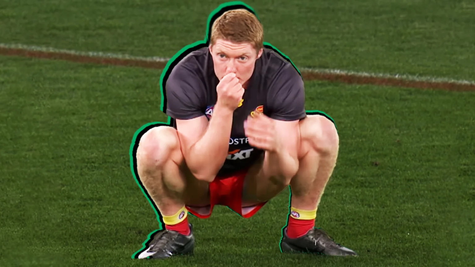 WATCH: AFL player eats grass in hectic pre-game routine setting internet alight