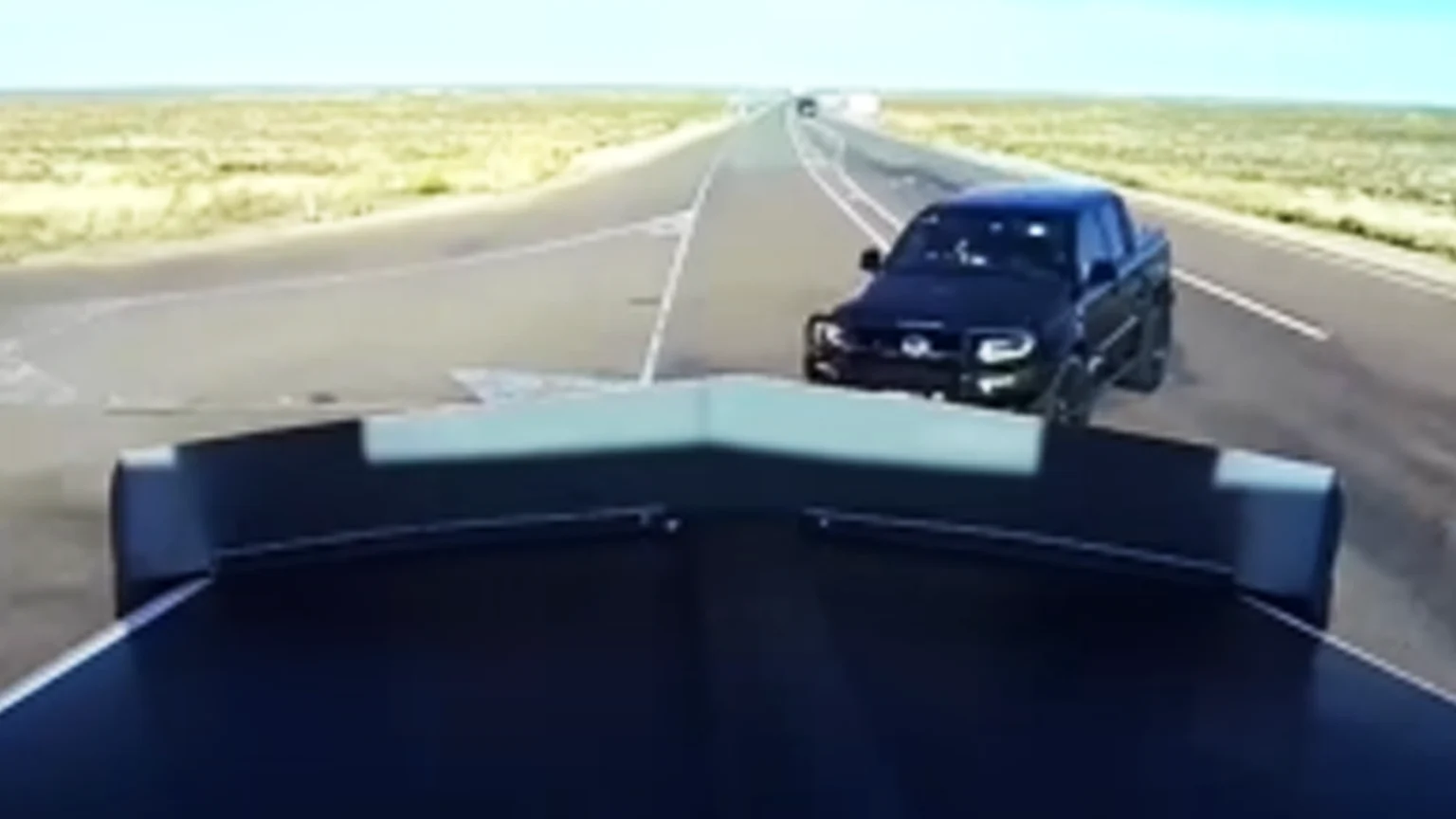 WATCH: Aussie ute barely avoids getting absolutely crushed by road train in wild dash cam vid