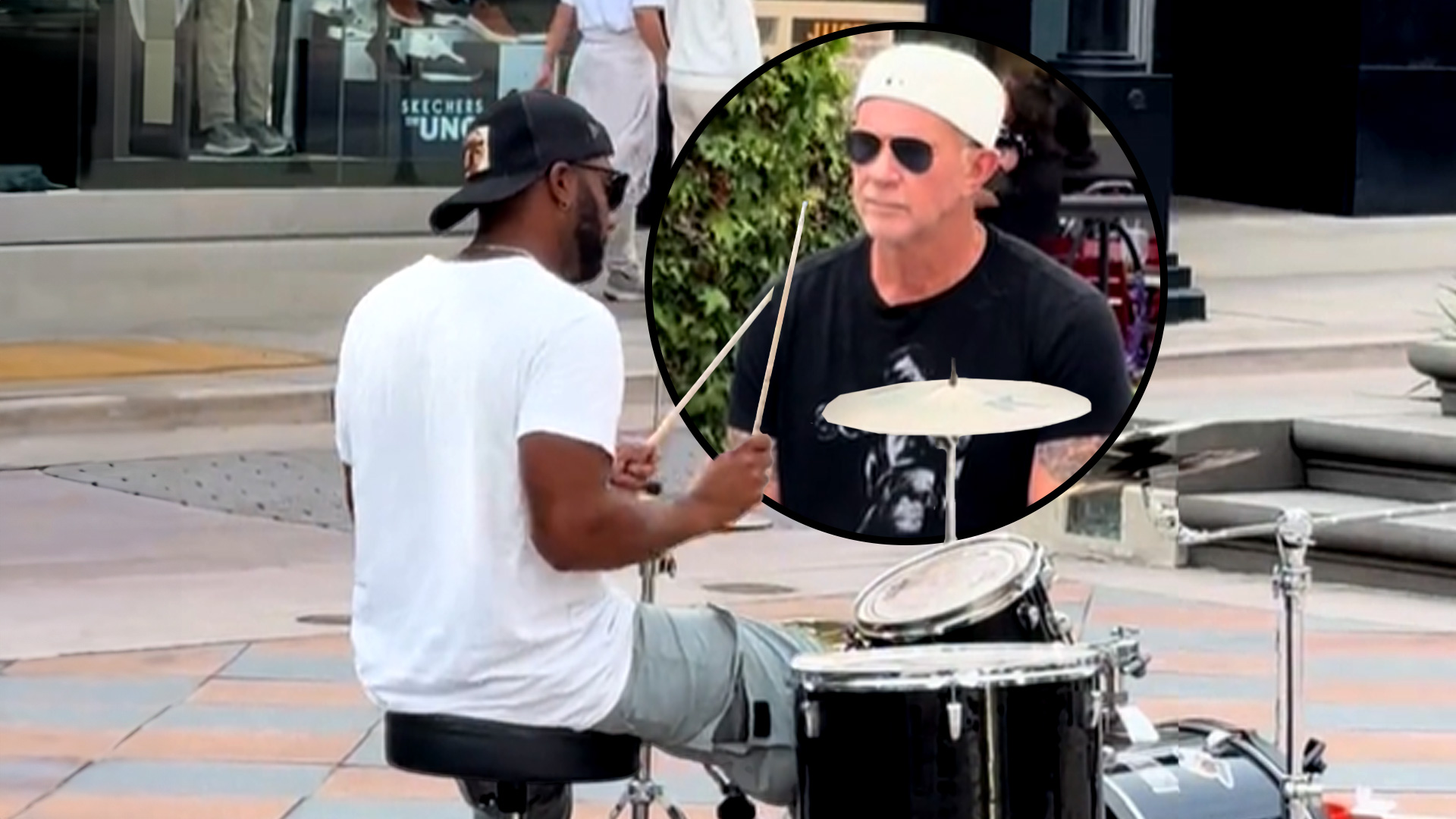 Red Hot Chili Peppers drummer Chad Smith did a little roaming around and took a moment to watch a busker jamming to “Otherside.”