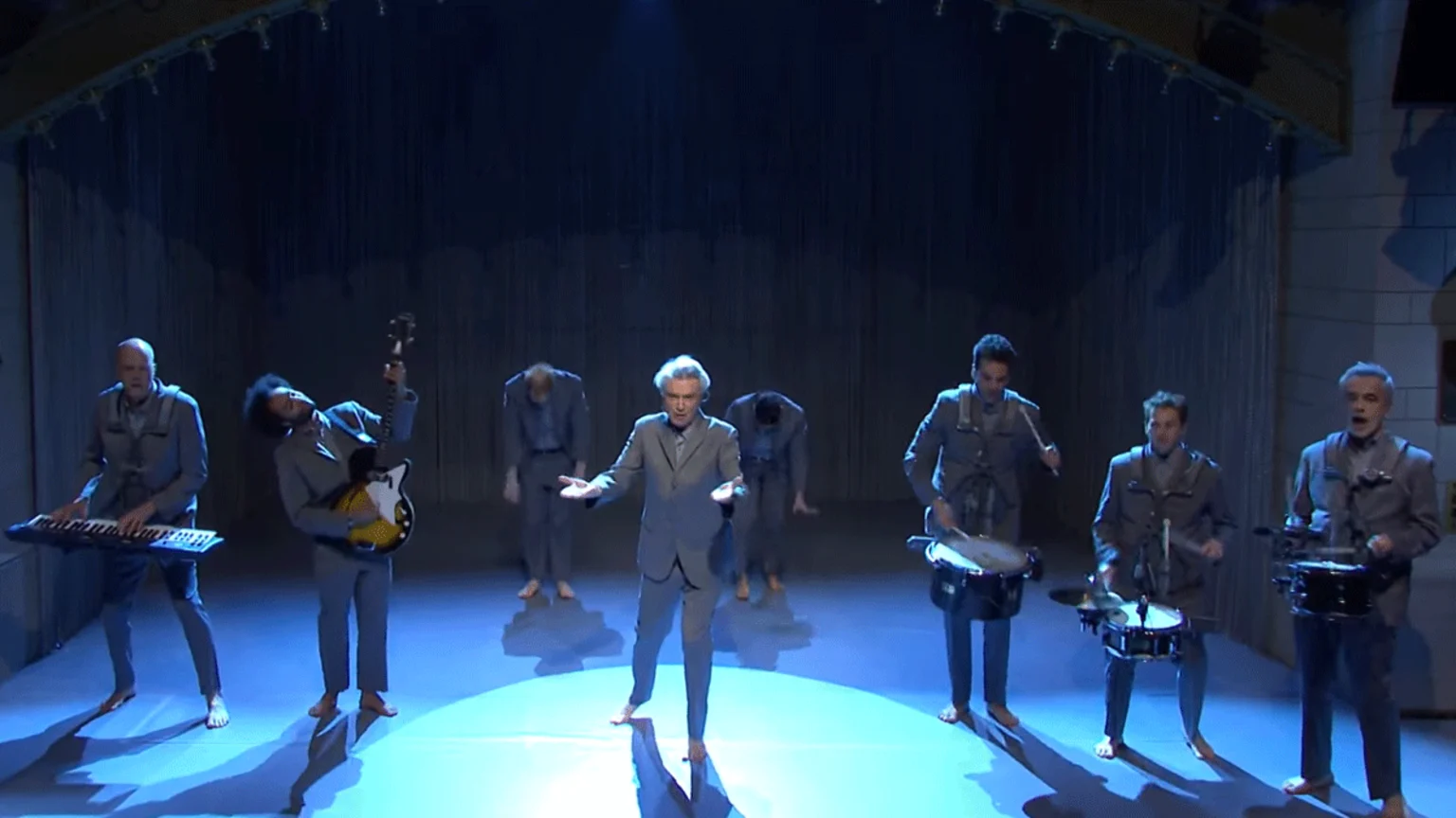 Byrne appeared as the musical guest this week to promote his recently announced Broadway stage show, American Utopia. The show is due to return in September for a 17-week trek until early 2021.