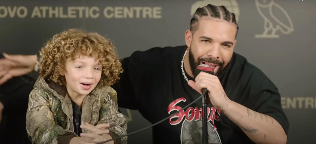 Drake also makes a cameo appearance in a sports press conference scene alongside his son.