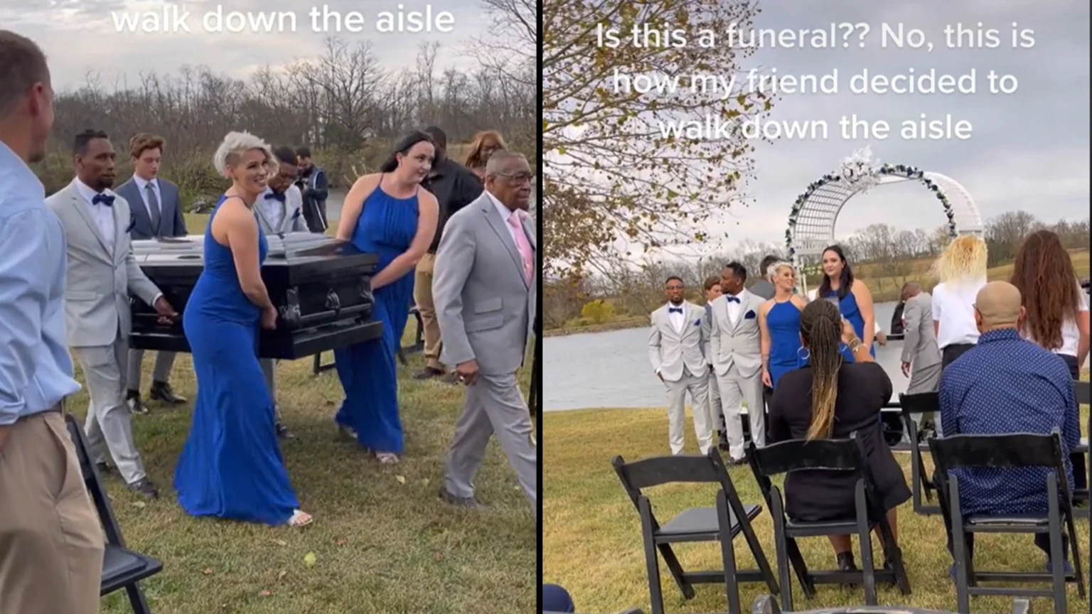 A TikTok has gone viral of a groom being carried down the aisle in a coffin on his wedding day, and the internet isn't happy about it.