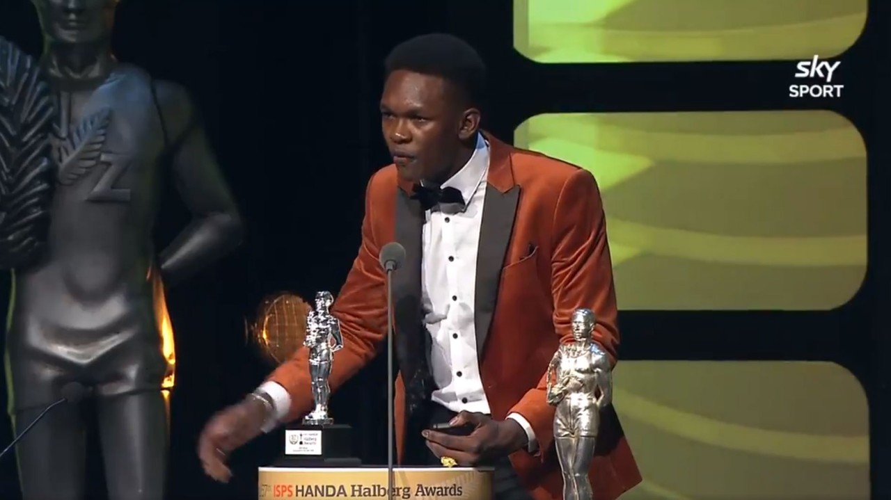 After accepting his trophy, Adesanya used his time on stage for a rousing speech and take aim at New Zealand's obsession of putting successful people down.