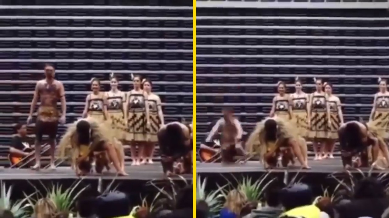 WATCH: Kapa Haka performer makes quick recovery after falling off stage and hitting his head