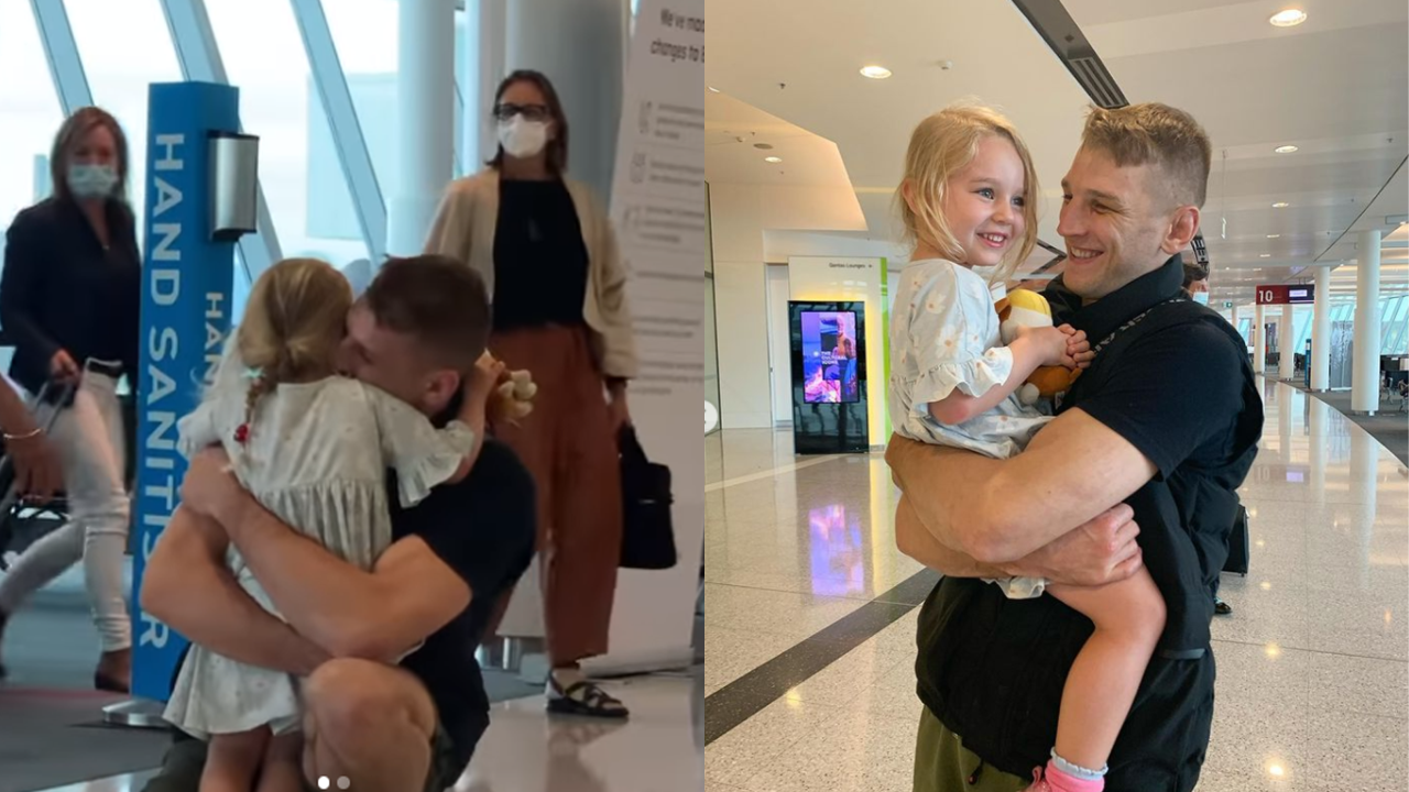The video shows Hooker returning from his travels, only to be greeted by his adoring daughter running to his arms.