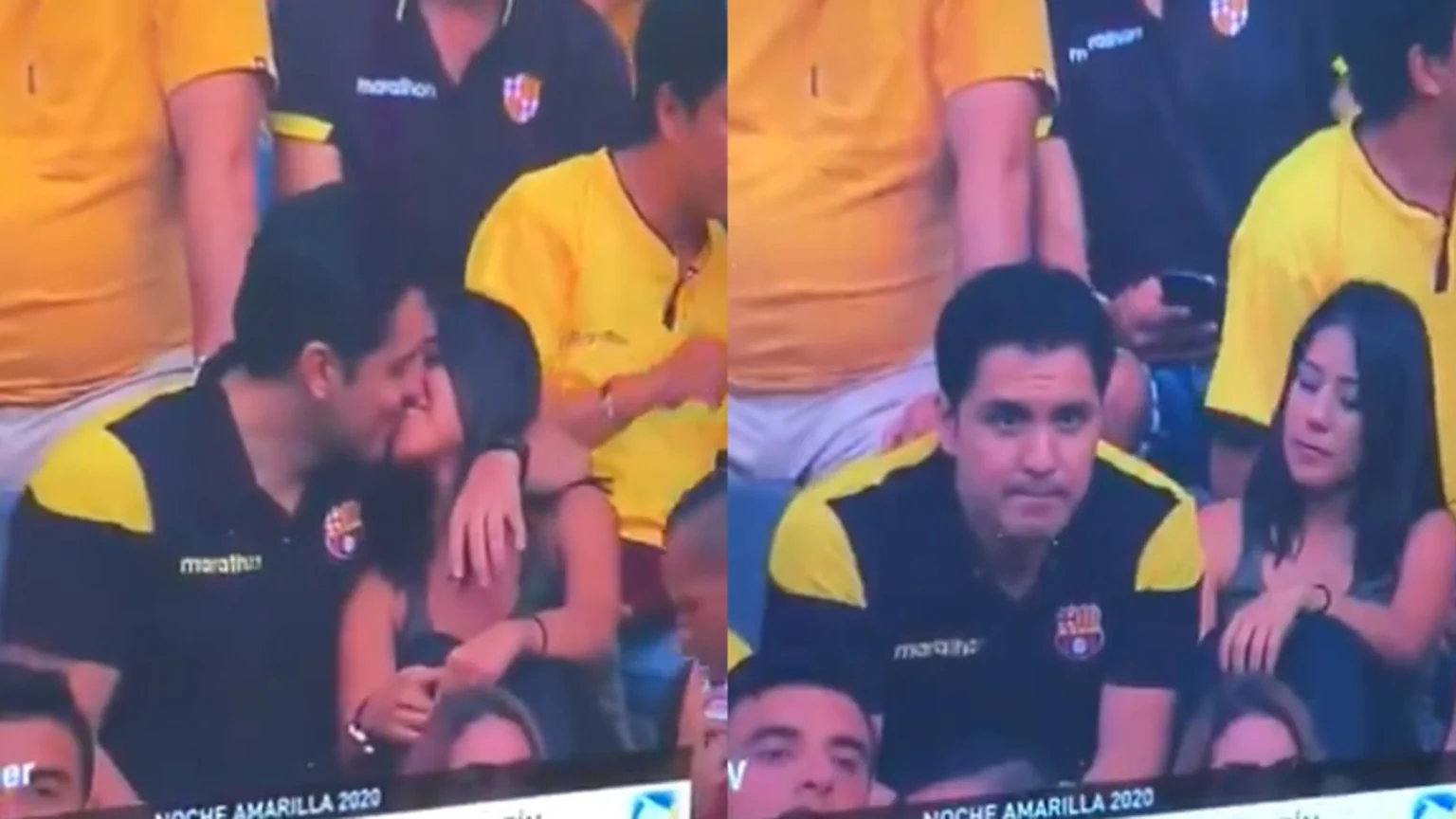 A South American man has lived every adulterer's worst nightmare - getting caught canoodling with his mistress on the big screen of a sports match, and subsequently capturing the attention of the world.