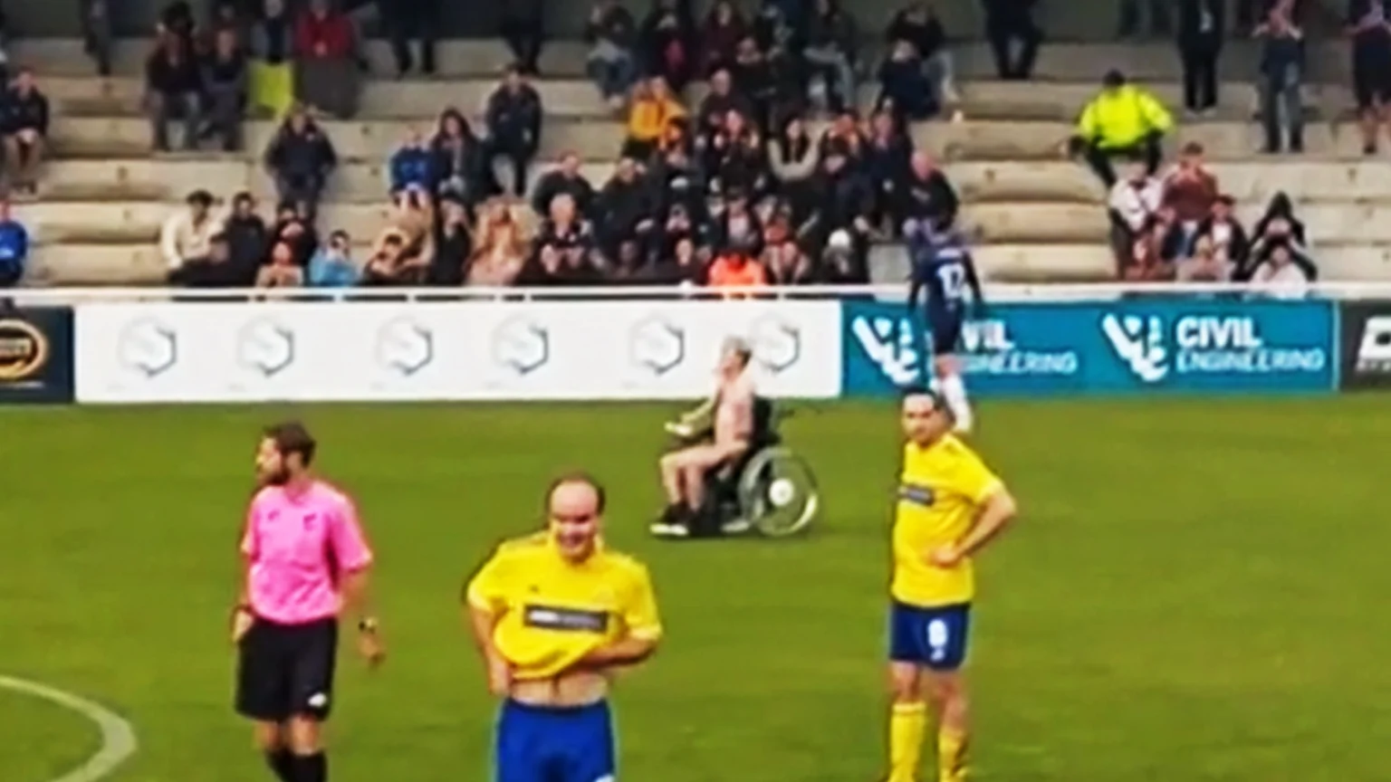 WATCH: Naked bloke in wheelchair streaks during top Kiwi soccer match and it's glorious
