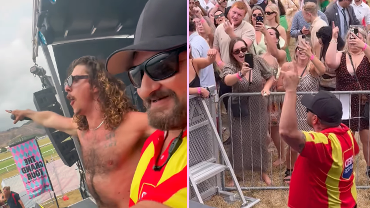 The Grand Tour in Wellington witnessed security legend Nathan Hogan busting a move, turning the security barricade into his personal dance floor.
