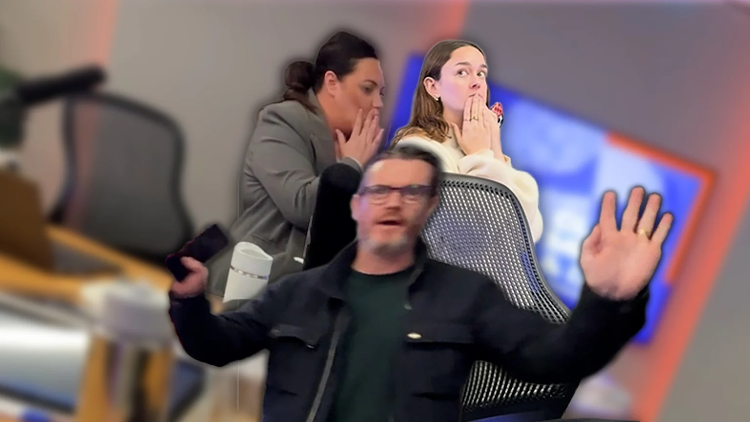Cue everyone freaking out. “What?! Are you serious?!” the whole team launches into full-on panic mode. And honestly? They absolutely commit.