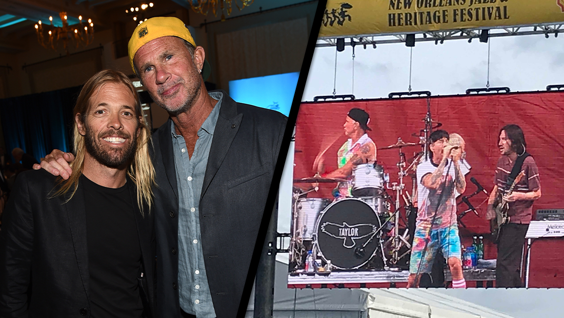 Red Hot Chili Peppers paid tribute to the late great Taylor Hawkins during their headline set at New Orleans Jazz & Heritage Festival on Sunday (May 1).