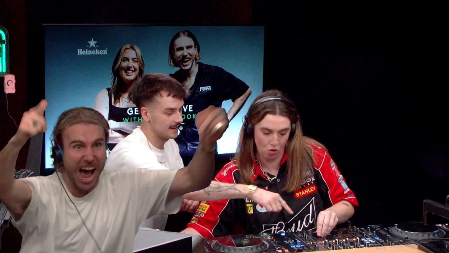 He walked Brook through the 'Sunset Triple' - a signature chop between three tracks, this one consisting of Hedex's 'Sunset VIP', Serum's 'Freak Like Me' and Disrupta's 'Come In' - before getting him to have a crack.
