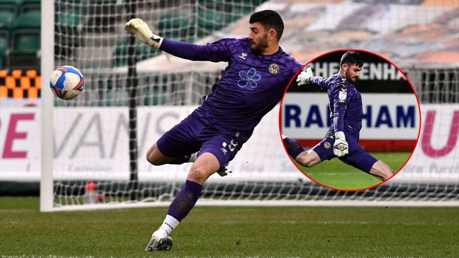 Tom King, goalkeeper for Newport County, kicked the ball from his own box during a League Two game against Cheltenham Town and the ball was carried down the field by the wind until it sped past opposing goalie Joshua Griffiths and into the goal.