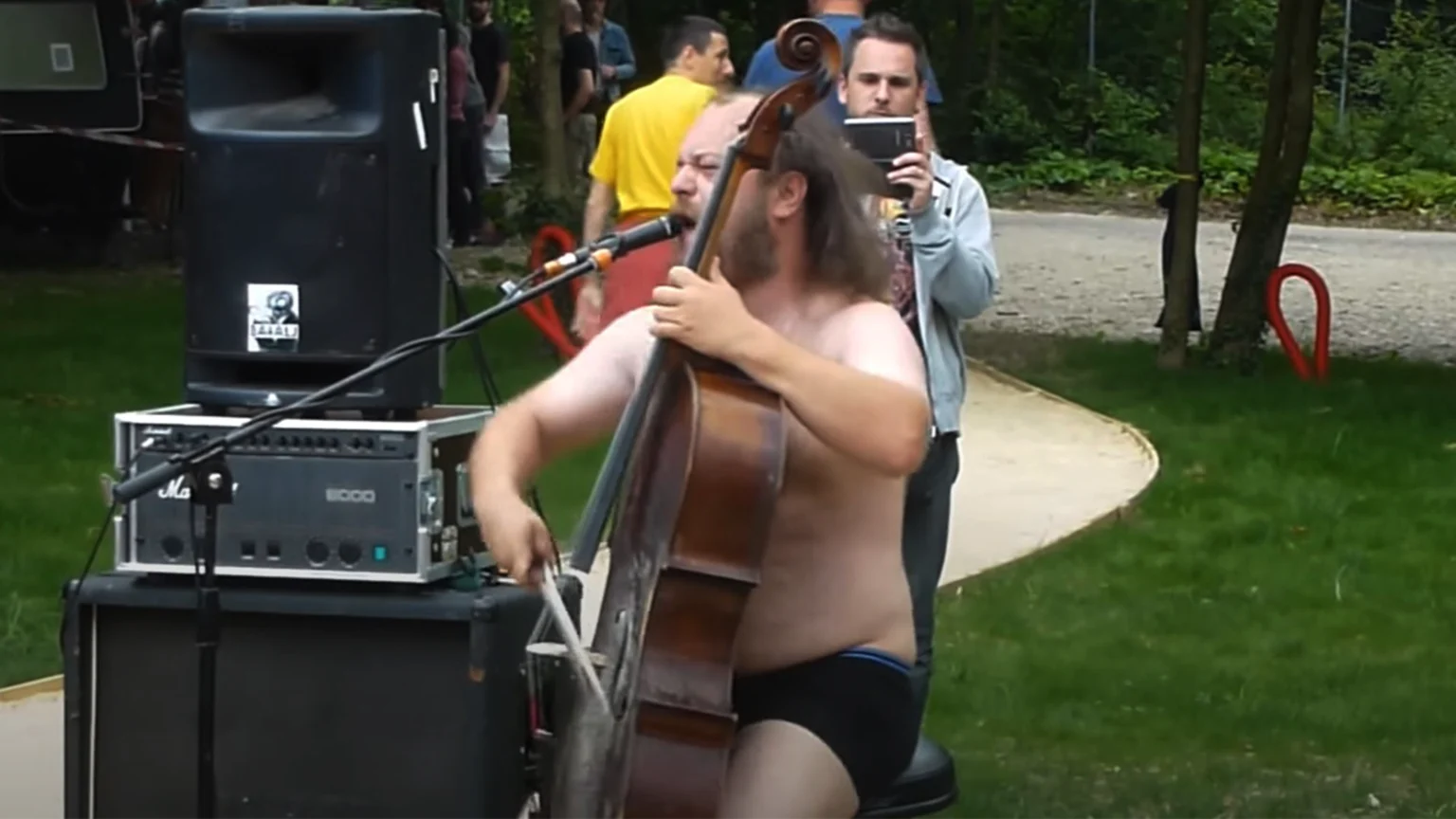 Watch this nearly naked bloke play death metal on a cello in the park