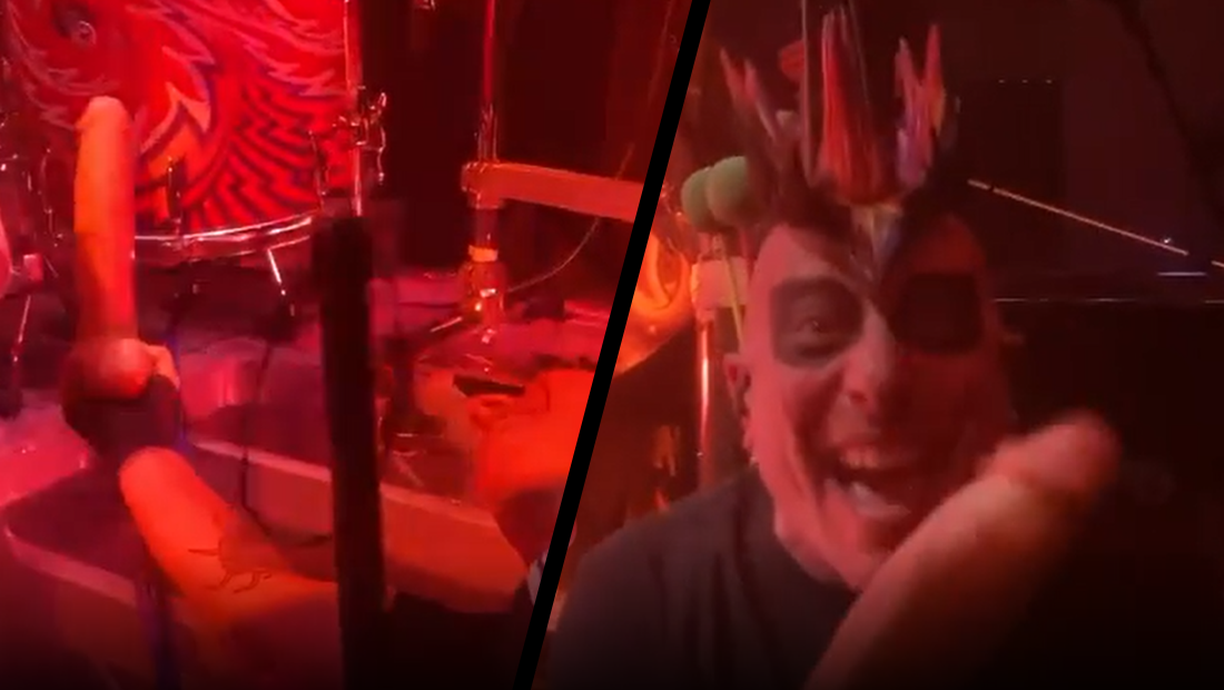 While Carey was performing his drum solo during the show, frontman Maynard James Keenan replaces the usual gong mallet with a big ol' dildo, and slips it in Carey's hand.