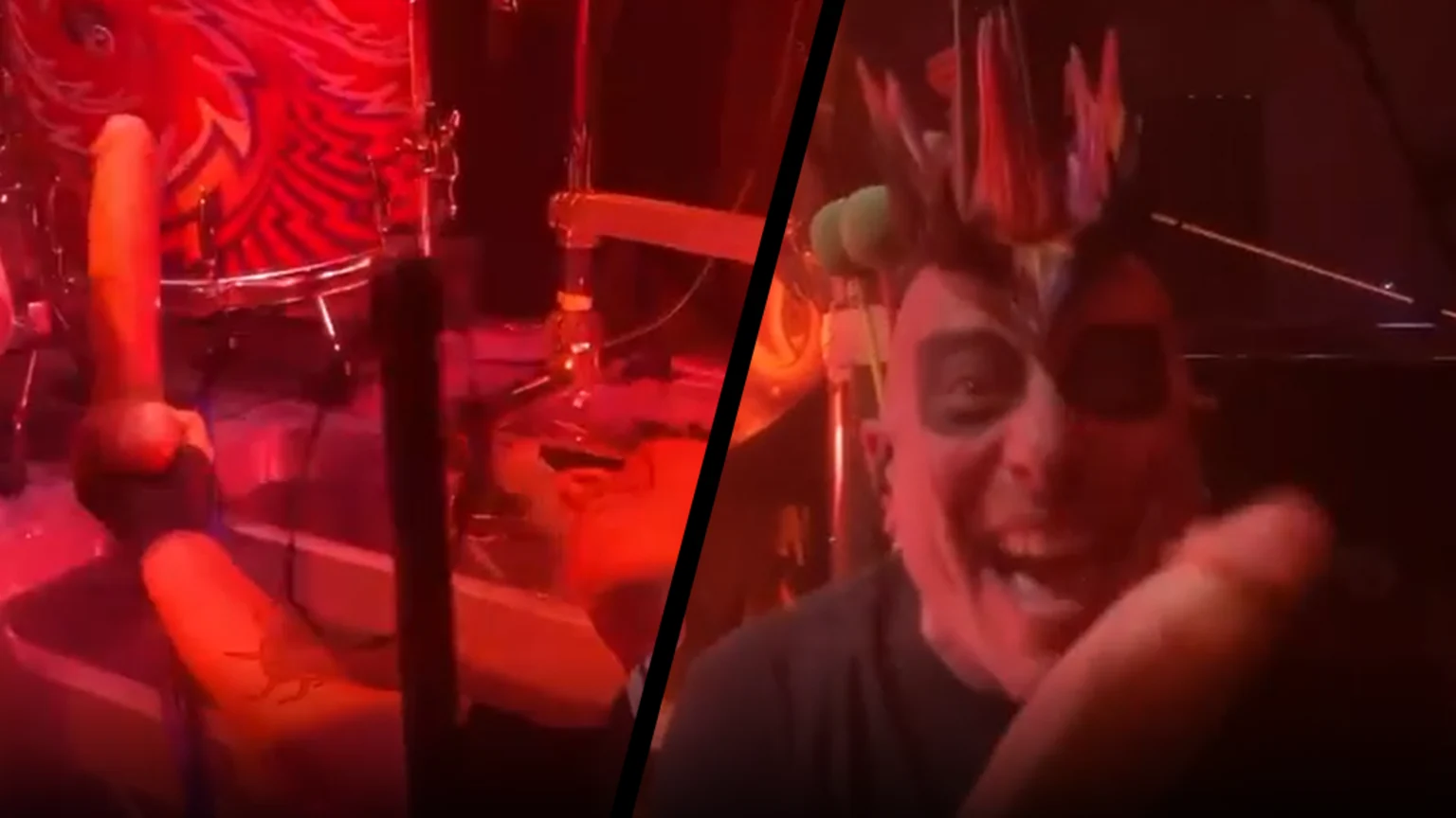WATCH: Tool's Maynard James Keenan gets Danny Carey to hit gong with dildo during gig
