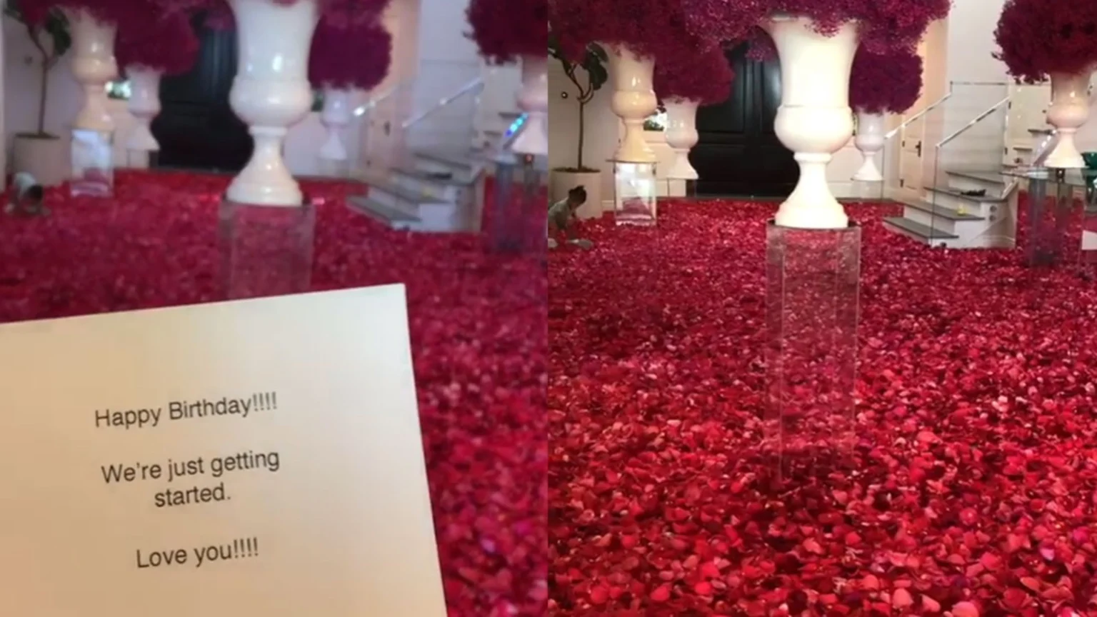 The world's youngest self-made billionaire took to IG to show off the lavish gift Travis had set up for her; a mansion full of roses.