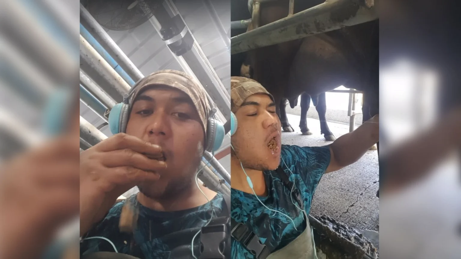 But on Whangarei farmer has taken his love of milk and cookies to the next level, getting back to basics for a drink of milk. Mihaka Hemi Beckham, who works at Jordan Valley Farm, posted up a hilarious video of himself eating a biscuit and squirting milk into his mouth from a teat of a cow.