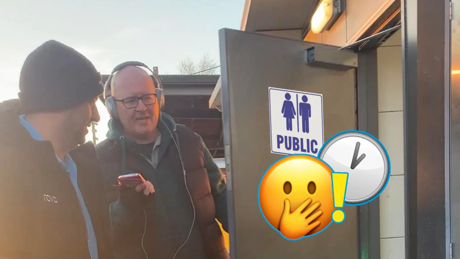 Our first indication something might happen was when Paul read a sign outside of the toilet that warned of a 'Loiter Alarm' that said "After 10 minutes warning will sound and the door will open"
