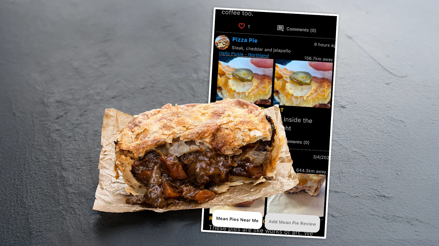 The app allows users to see pie shops from around the country, click into them to see reviews left by other people - and if the pie in question looks like a bitta them, the app offers directions on how to get to the pie shop.