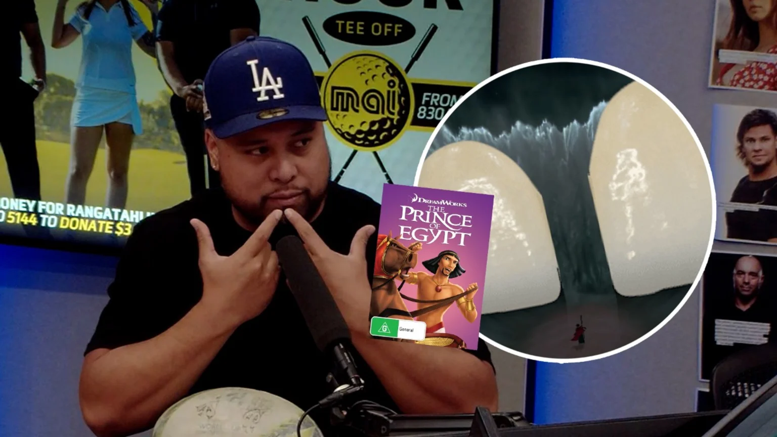 Fame took aim at the tooth gap he had when he was a kid, saying it could play the water parted by Moses in The Prince Of Egypt.